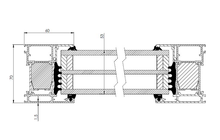 1 - wzmocnienie drewniane pod zawias 2 - grubość skrzydła 82 mm 3 - pakiet 4 szybowy z ciepłymi ramkami dystansowymi 4 - ościeżnica symetryczna aluminiowa 70 mm, grubość ścianki profilu 1.5 mm + powłoka folia PVC odporna na promieniowanie UV i warunki atmosferyczne 5 - 2 uszczelki w ramie 6 - 1 uszczelka w skrzydle