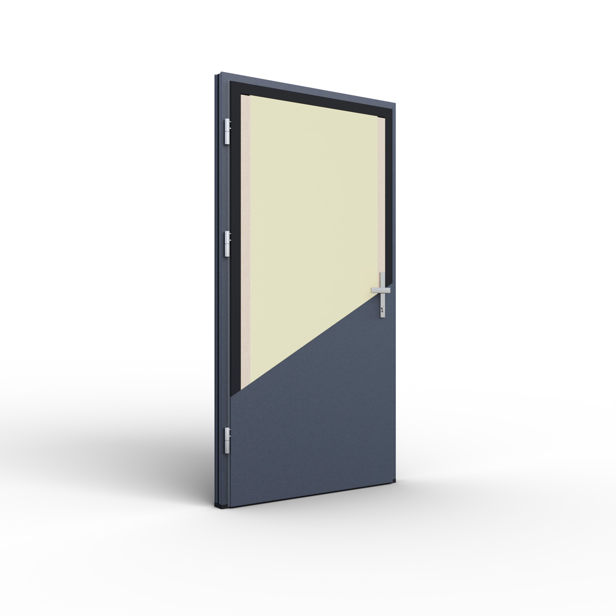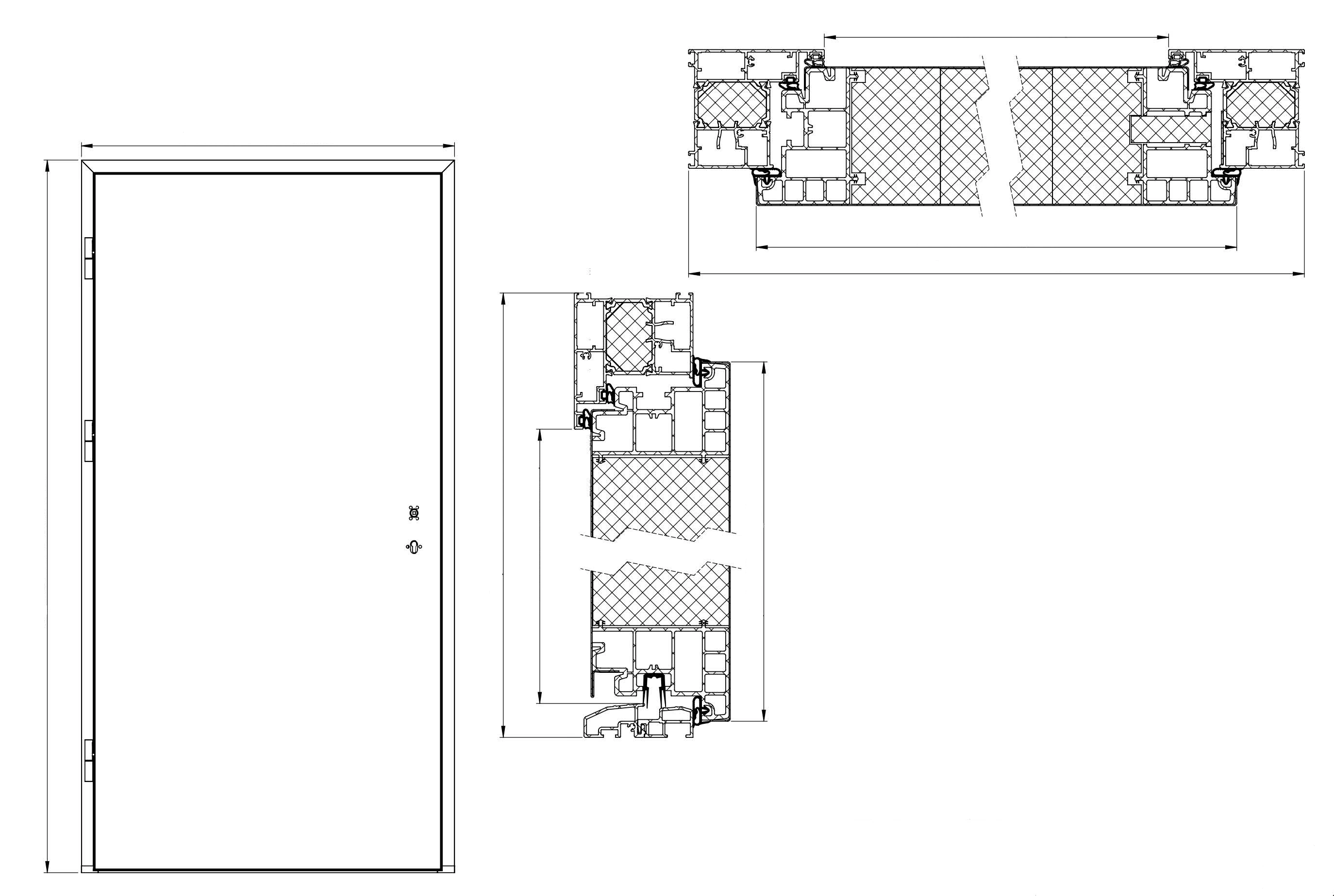 Drzwi stalowo aluminiowe jednoskrzydłowe DS82 dostępne są w standardowych wymiarach. Oferowane drzwi można wyposażyć w dostawkę boczną (doświetle) lub świetlik (naświetle).