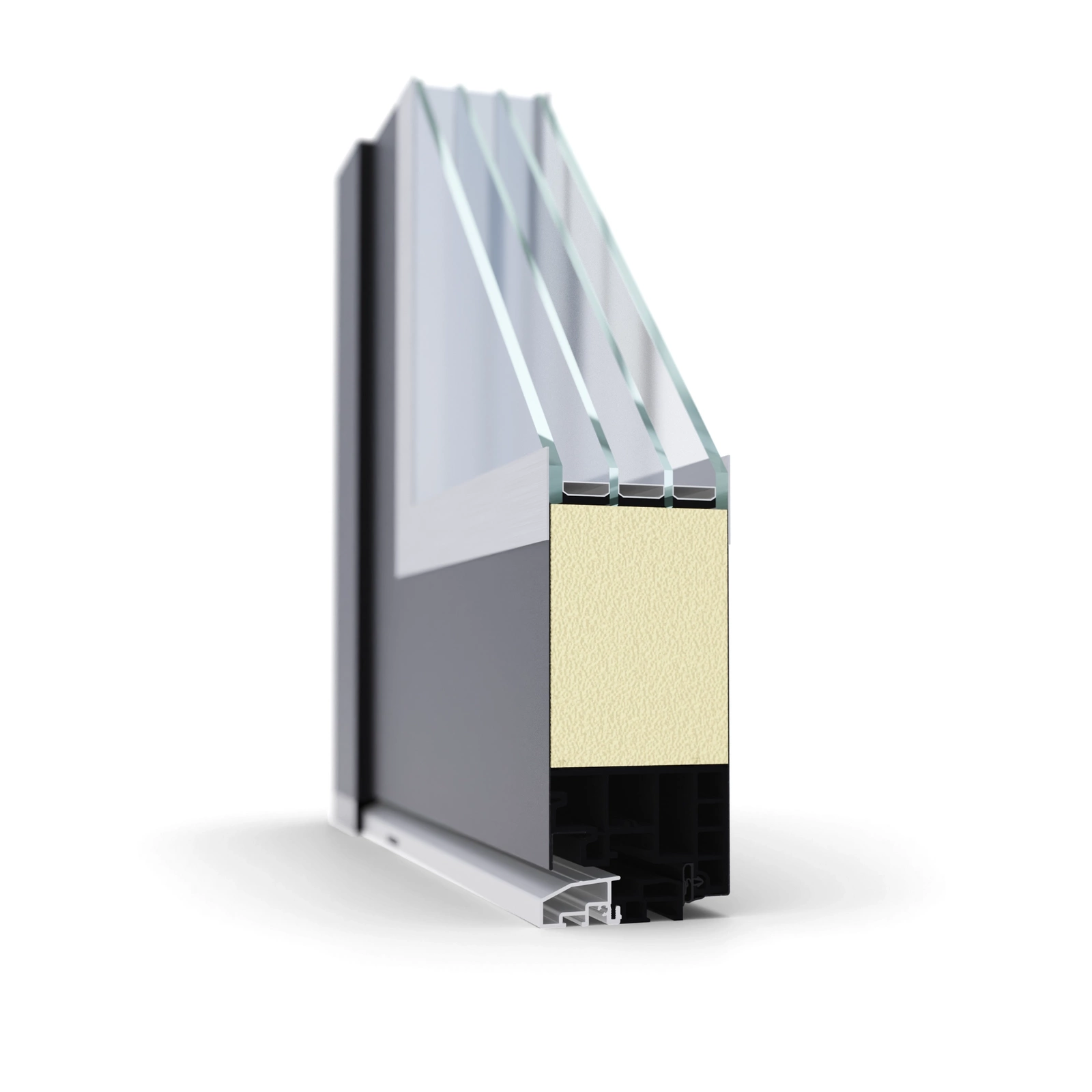 1 - izolacja XPS 2 - poszycie: galwanizowana blacha stalowa 0.7 mm + powłoka folia PVC odporna na promieniowanie UV i warunki atmosferyczne 3 - próg aluminiowy 64 mm