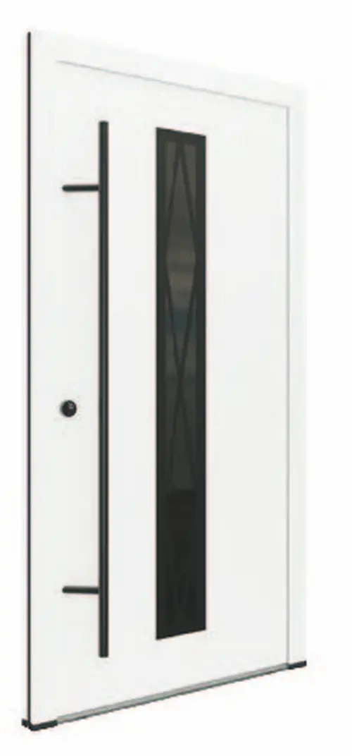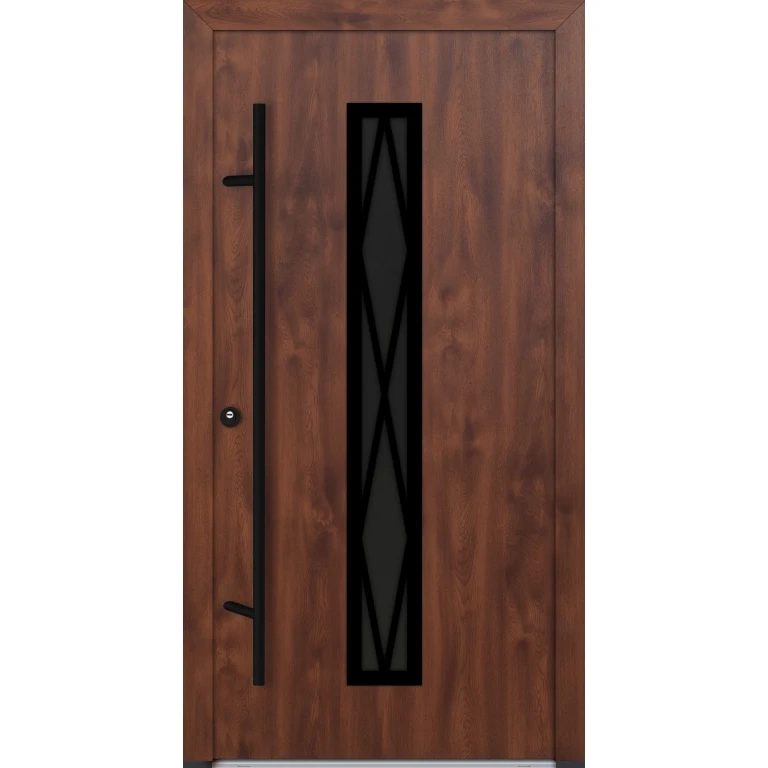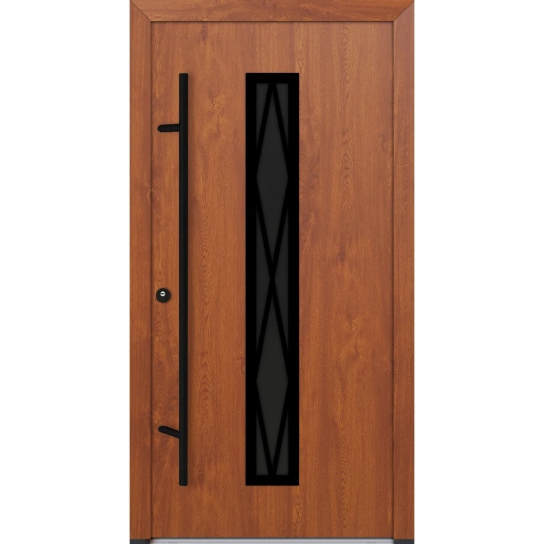 Skrzydło drzwiowe o grubości 82mm wypełnione jest XPS-em (styrodur). Poszycie stanowią blachy ze stali nierdzewnej pokryte folią PVC odporną na UV i warunki atmosferyczne. DS82 dostępne są w kolorze antracyt, biały, orzech, złoty dąb, winchester i dąb turner. Izolacyjność termiczna wynosi 0,68 W/m²K bez szyby i 0,89 - 1,09 W/m²K z szybą, w zależności od modelu szyby. Drzwi w standardzie wyposażone są w 5-punktowy zamek hakowy Winkhaus, zawiasy 3D z 6 bolcami zabezpieczającymi przed wyważeniem, 3 uszczelki systemowe - 2 w ościeżnicy i 1 w skrzydle oraz próg z izolacją termiczną. Jeżeli podoba Ci się pochwyt zwany inaczej antabą możesz wybrać prostokątny lub okrągły, inox lub czarny. Jeżeli natomiast wolisz standardowe rozwiązania możesz zamówić drzwi z klamką srebrną lub czarną po obu stronach skrzydła. Oferowane drzwi dostępne są wielu ciekawych modelach. Możesz wybrać drzwi pełne bez przeszklenia lub przeszklone czyli z szybą. Niezależnie od wybranego modelu przeszklenia można wybrać szybę przezroczystą, satynową (mleczną), przyciemnioną w kolorze grafitowym, odbijającą reflex również w kolorze grafitowym oraz popularne lustro weneckie.