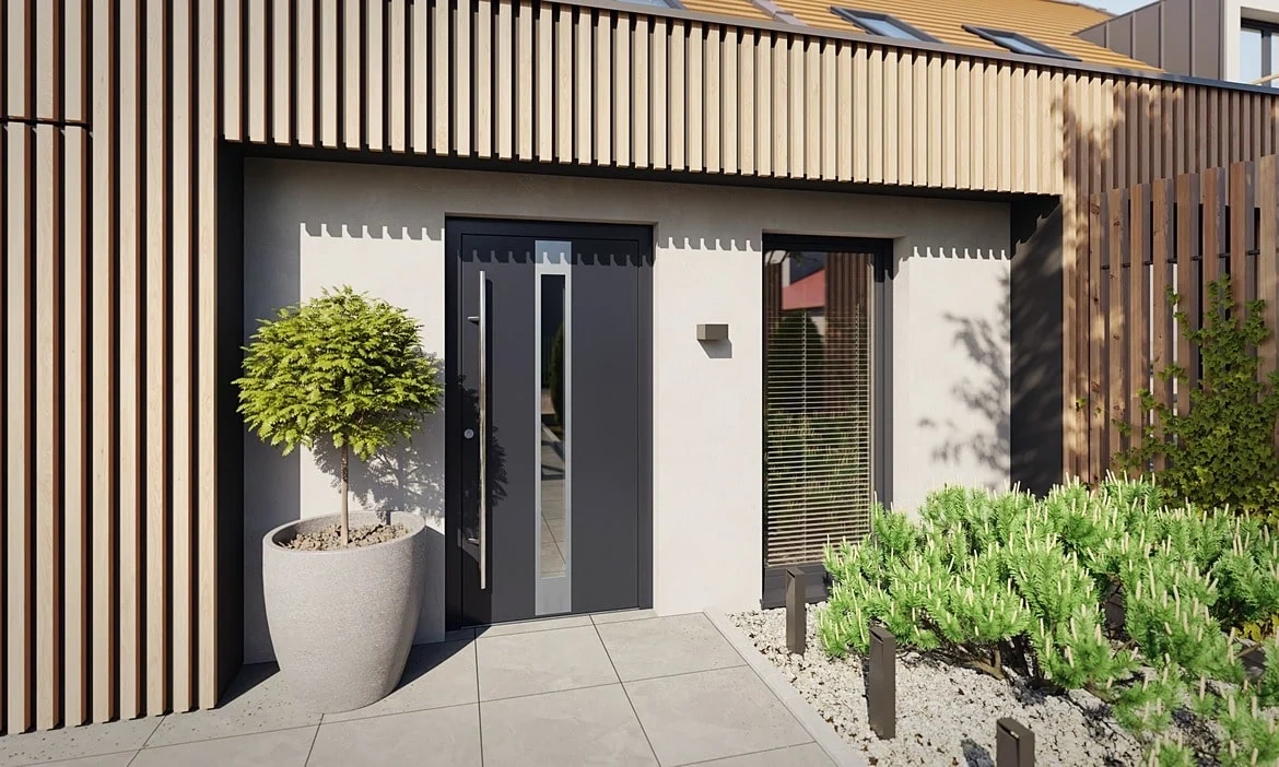 Polecamy drzwi zewnętrzne stalowo aluminiowe do domów jedno- i wielorodzinnych. Bogata oferta wzorów i kolorów sprawia, że każdy znajdzie drzwi odpowiednie dla siebie. Wszystkie dostępne opcje zostały starannie zaprojektowane, aby harmonizować z budynkami i otoczeniem.