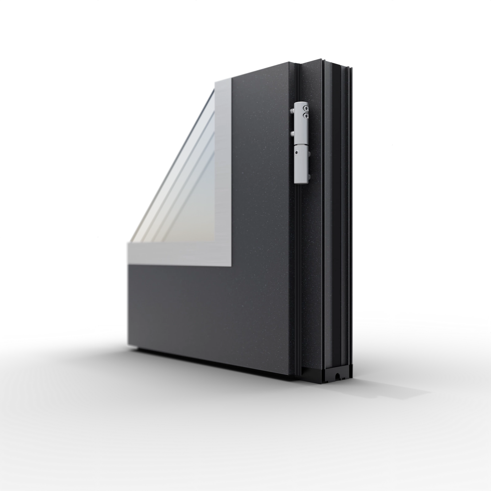 1 - przylga czterostronna 2 - bolce antywyważeniowe - 6 sztuk 3 - ościeżnica aluminiowa symetryczna 4 - zawiasy 3D - 3 sztuki 5 - zamek listwowy: pięciopunktowy zamek hakowy Winkhaus