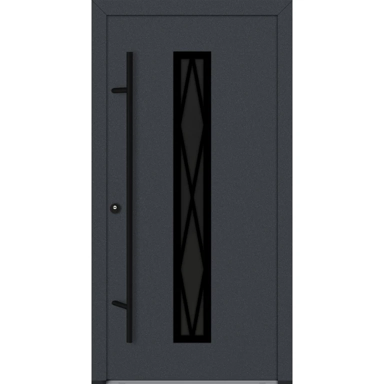 Drzwi zewnętrzne wejściowe do domu stalowo aluminiowe 82 mm DS82 U <= 0,89 antaba czarna szyba ciemna lustro weneckie Program Czyste Powietrze C24
