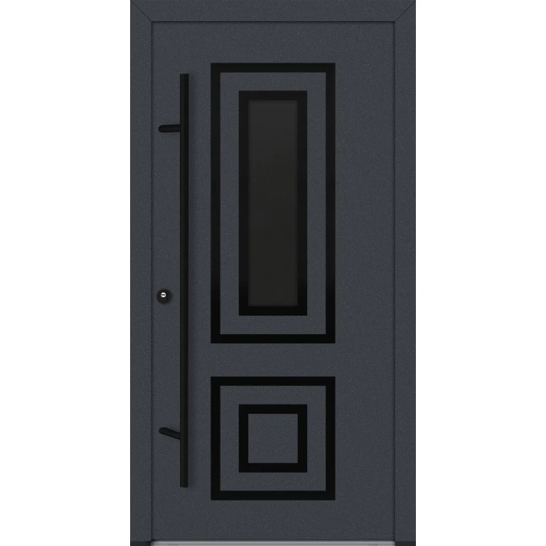 Drzwi zewnętrzne wejściowe do domu stalowo aluminiowe 82 mm DS82 U <= 0,89 antaba czarna szyba ciemna lustro weneckie Program Czyste Powietrze C32