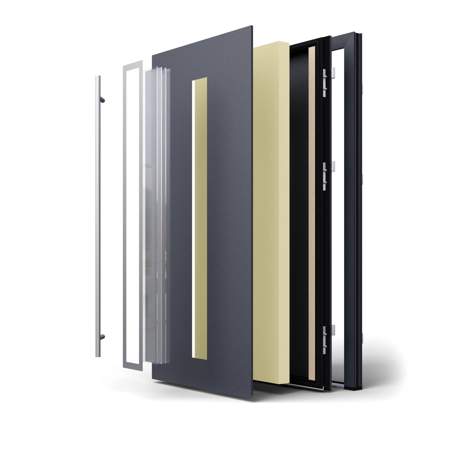 • Energooszczędne drzwi zewnętrzne stalowe z ramą aluminiową, wejściowe do domów jednorodzinnych i wielorodzinnych. Dostępne w standardowych wymiarach, kilku kolorach oraz wielu modelach przeszkleń. Możliwość wyposażenia w dostawkę boczną i górną.