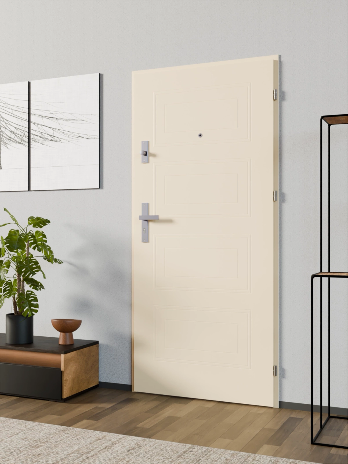 • Atrakcyjne cenowo drzwi wewnątrzklatkowe, wejściowe do mieszkania z klatki schodowej, inaczej klatkowe. Korzystny stosunek ceny do jakości. Okucia srebrne lub czarne. Paleta 21 kolorów. Dostępne w 6 rozmiarach standardowych. Możliwość skrócenia.