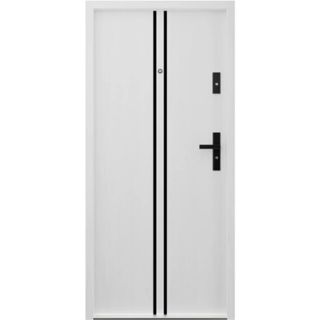 Ekonomiczne drzwi wewnątrzklatkowe wejściowe do mieszkania z klatki schodowej 55 mm stalowe biały drewnopodobny A7