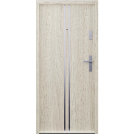 Ekonomiczne drzwi wewnątrzklatkowe wejściowe do mieszkania z klatki schodowej 55 mm stalowe dąb sonoma A7