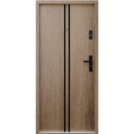 Ekonomiczne drzwi wewnątrzklatkowe wejściowe do mieszkania z klatki schodowej 55 mm stalowe dąb trufla A7