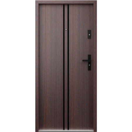 Ekonomiczne drzwi wewnątrzklatkowe wejściowe do mieszkania z klatki schodowej 55 mm stalowe mahoń A7