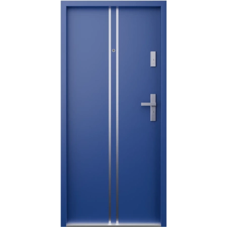 Ekonomiczne drzwi wewnątrzklatkowe wejściowe do mieszkania z klatki schodowej 55 mm stalowe niebieskie A7