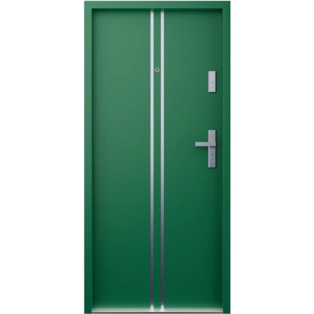 Ekonomiczne drzwi wewnątrzklatkowe wejściowe do mieszkania z klatki schodowej 55 mm stalowe zielone A7