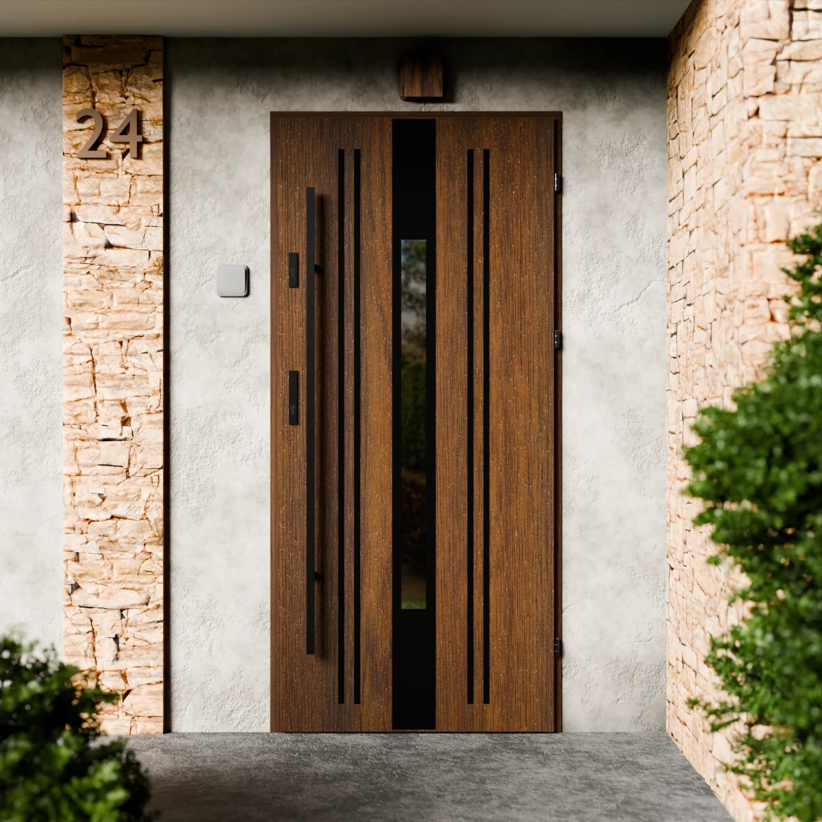 Dostępne w wielu wymiarach drzwi zewnętrzne będą idealnym wyborem nie tylko dla domów jednorodzinnych, ale także budynków wielorodzinnych, jako drzwi wejściowe zewnętrzne. Ponadczasowy design sprawdzi się zarówno w przypadku nowoczesnych nieruchomości, jak i nieco starszych obiektów, łącząc w sobie estetykę oraz niezwykłą trwałość.