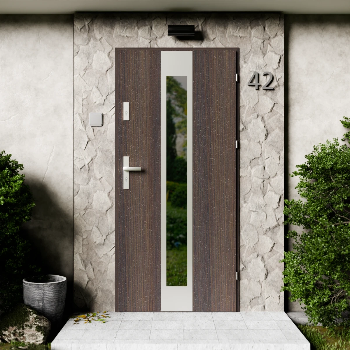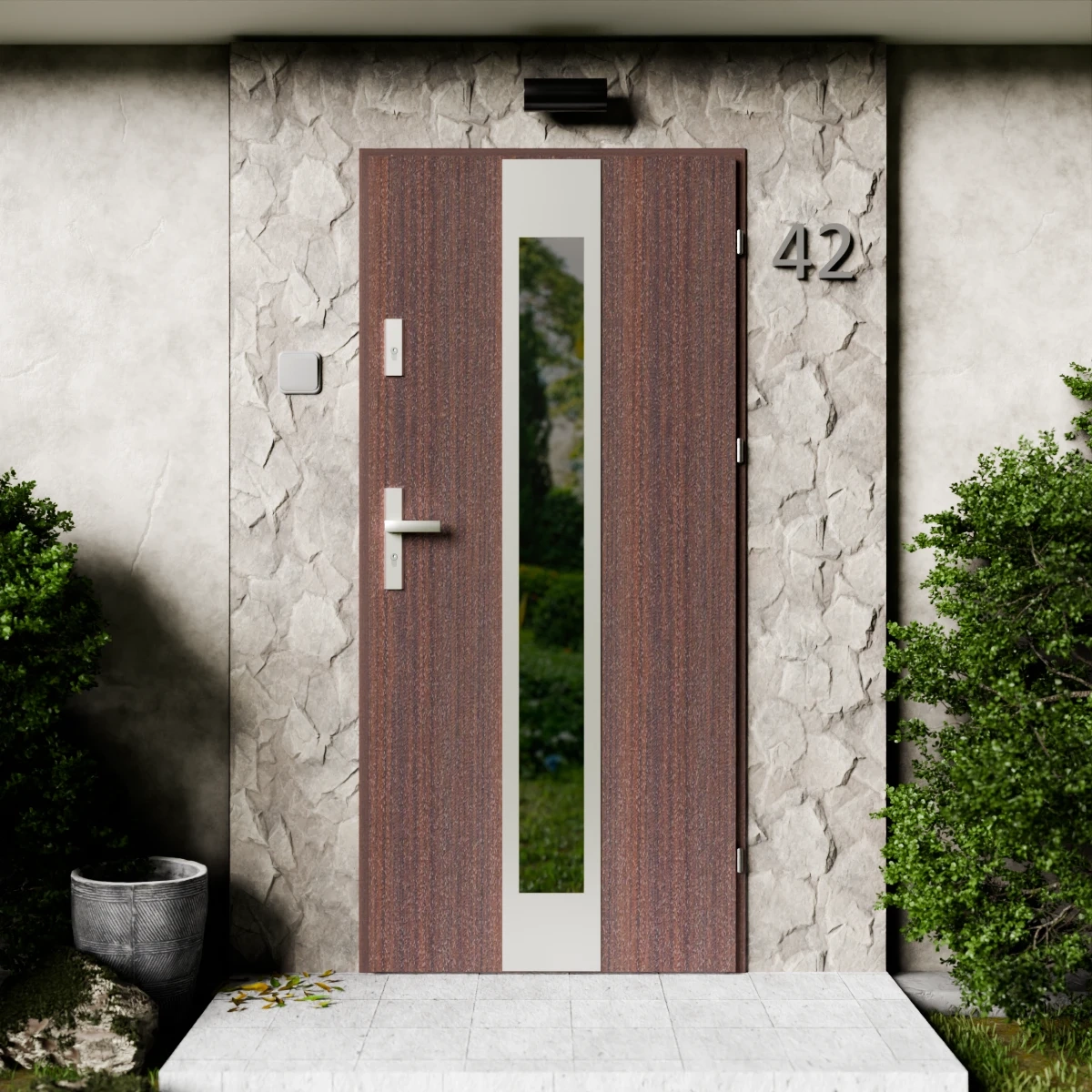 Dostępne w wielu wymiarach drzwi zewnętrzne będą idealnym wyborem nie tylko dla domów jednorodzinnych, ale także budynków wielorodzinnych, jako drzwi wejściowe zewnętrzne. Ponadczasowy design sprawdzi się zarówno w przypadku nowoczesnych nieruchomości, jak i nieco starszych obiektów, łącząc w sobie estetykę oraz niezwykłą trwałość.