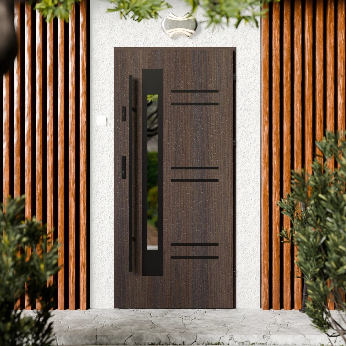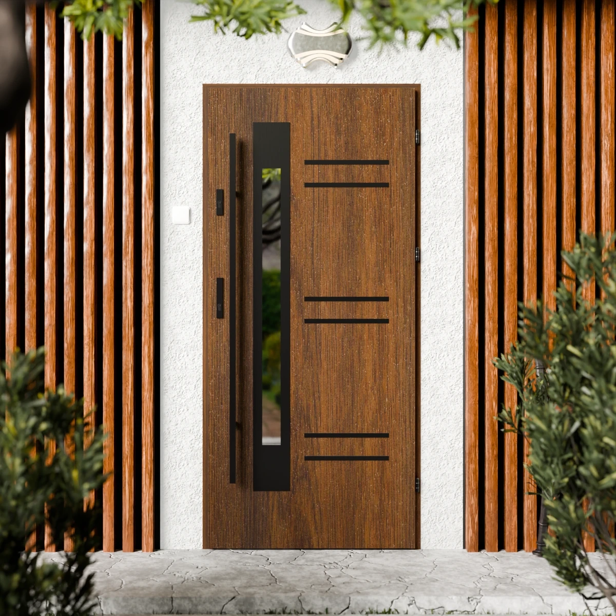 Dostępne w wielu wymiarach drzwi zewnętrzne będą idealnym wyborem nie tylko dla domów jednorodzinnych, ale także budynków wielorodzinnych, jako drzwi wejściowe zewnętrzne. Ponadczasowy design sprawdzi się zarówno w przypadku nowoczesnych nieruchomości, jak i nieco starszych obiektów, łącząc w sobie estetykę oraz niezwykłą trwałość.