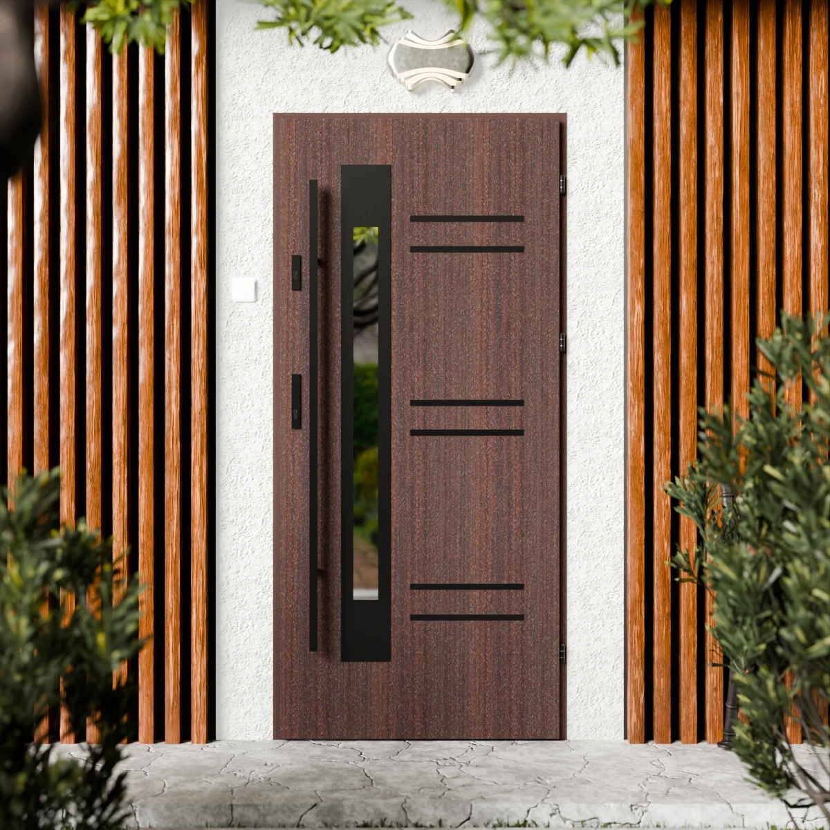 Dostępne w wielu wymiarach drzwi zewnętrzne będą idealnym wyborem nie tylko dla domów jednorodzinnych, ale także budynków wielorodzinnych, jako drzwi wejściowe zewnętrzne. Ponadczasowy design sprawdzi się zarówno w przypadku nowoczesnych nieruchomości, jak i nieco starszych obiektów, łącząc w sobie estetykę oraz niezwykłą trwałość.