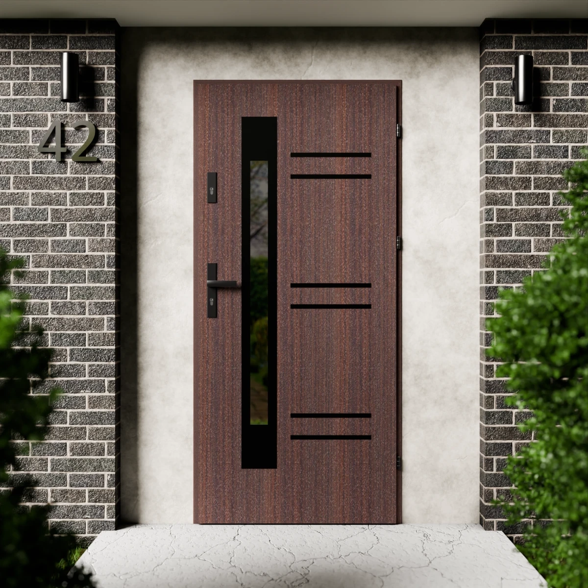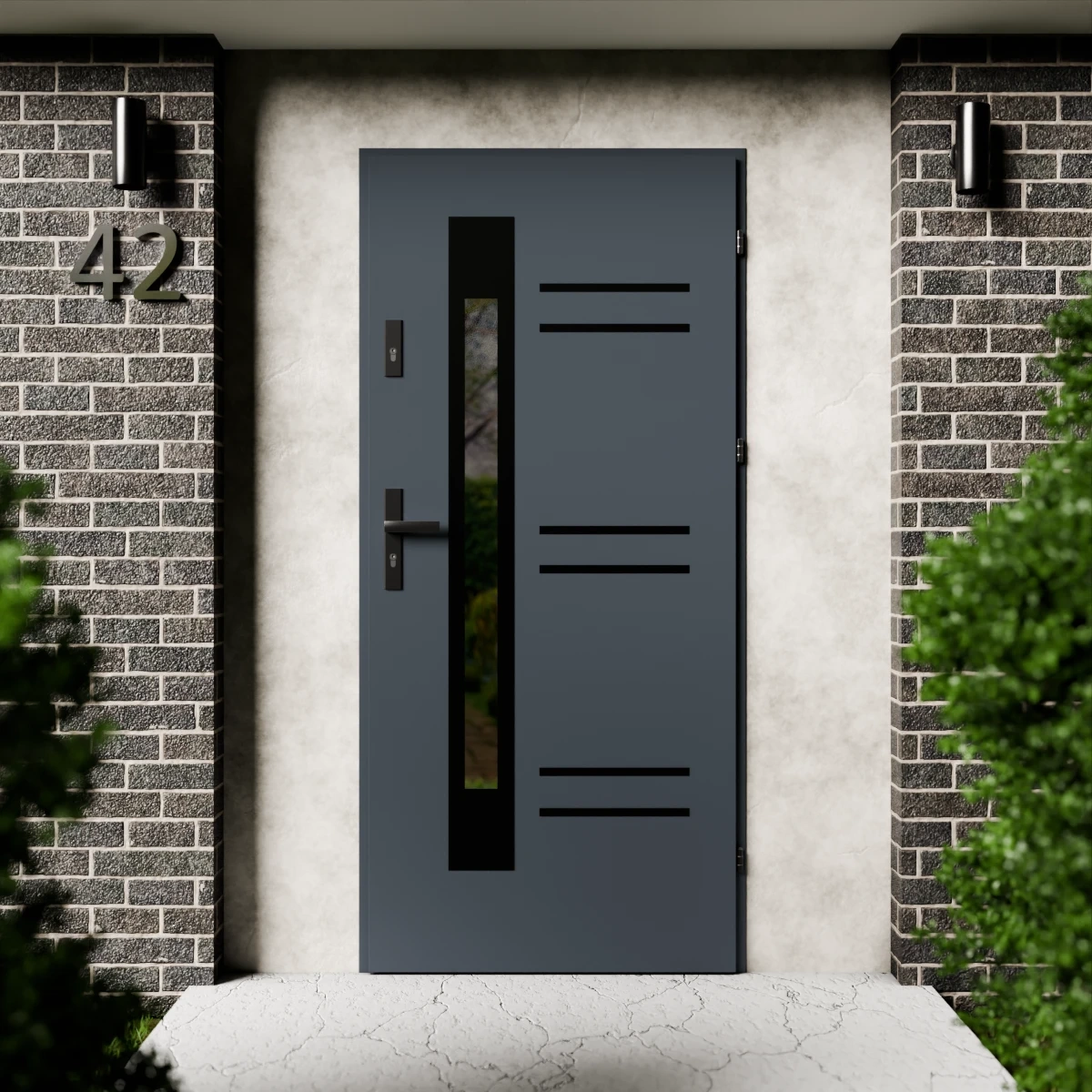 Dostępne w wielu wymiarach drzwi zewnętrzne będą idealnym wyborem nie tylko dla domów jednorodzinnych, ale także budynków wielorodzinnych, jako drzwi wejściowe zewnętrzne. Ponadczasowy design sprawdzi się zarówno w przypadku nowoczesnych nieruchomości, jak i nieco starszych obiektów, łącząc w sobie estetykę oraz niezwykłą trwałość.