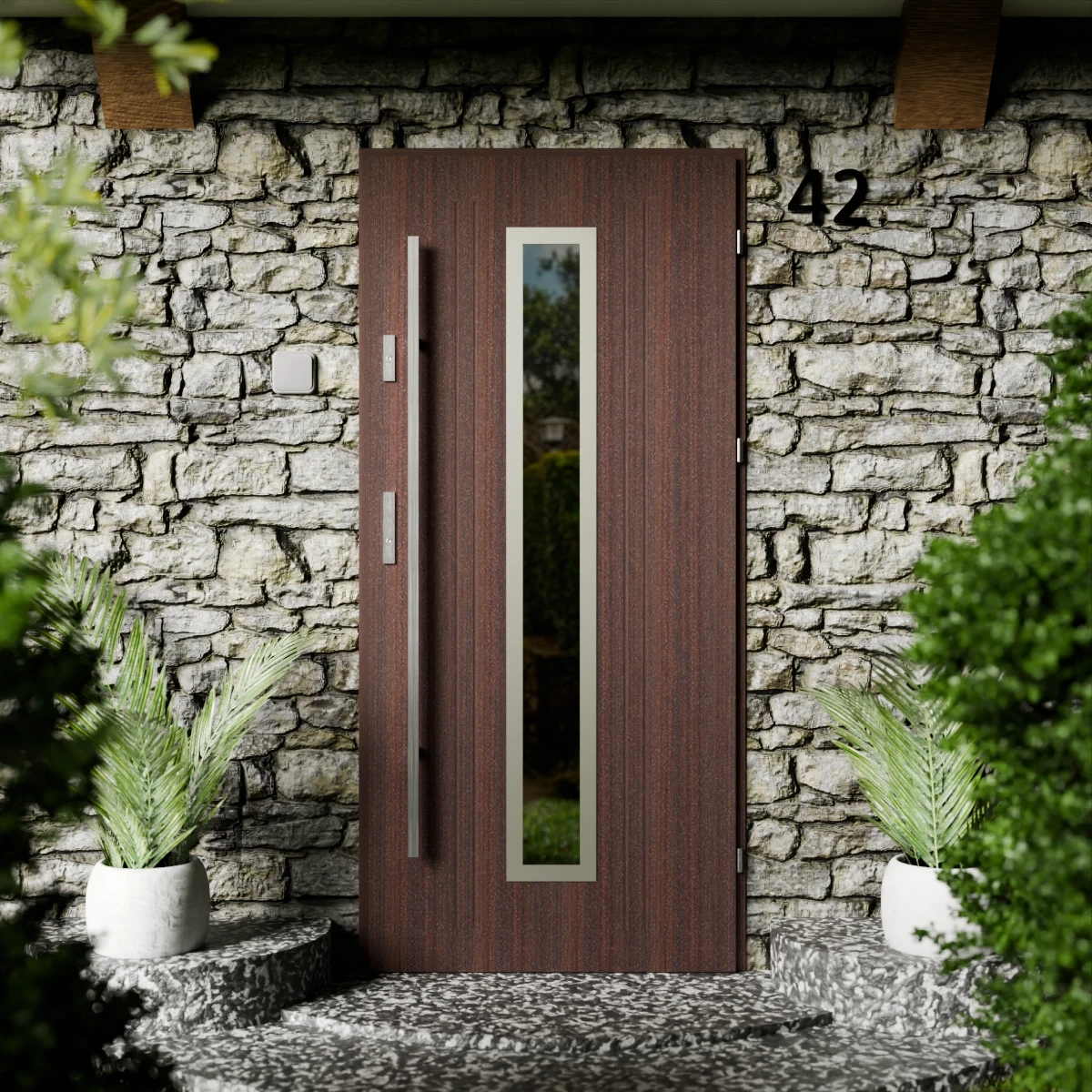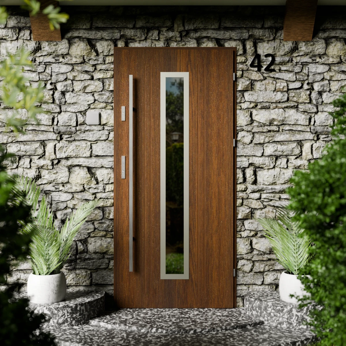 Dostępne w wielu wymiarach drzwi zewnętrzne będą idealnym wyborem nie tylko dla domów jednorodzinnych, ale także budynków wielorodzinnych, jako drzwi wejściowe zewnętrzne. Ponadczasowy design sprawdzi się zarówno w przypadku nowoczesnych nieruchomości, jak i nieco starszych obiektów, łącząc w sobie estetykę oraz niezwykłą trwałość.