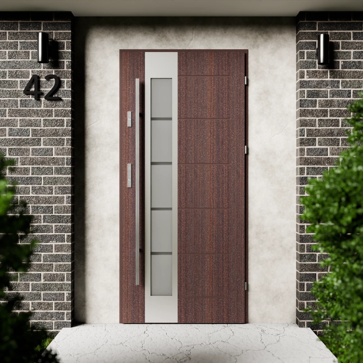 Dostępne w wielu wymiarach drzwi zewnętrzne będą idealnym wyborem nie tylko dla domów jednorodzinnych, ale także budynków wielorodzinnych, jako drzwi wejściowe zewnętrzne. Ponadczasowy design sprawdzi się zarówno w przypadku nowoczesnych nieruchomości, jak i nieco starszych obiektów, łącząc w sobie estetykę oraz niezwykłą trwałość.