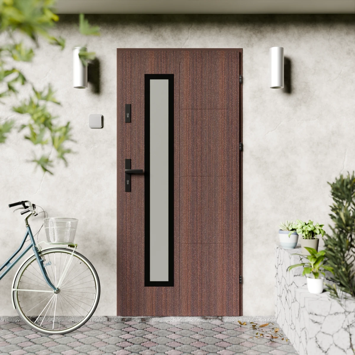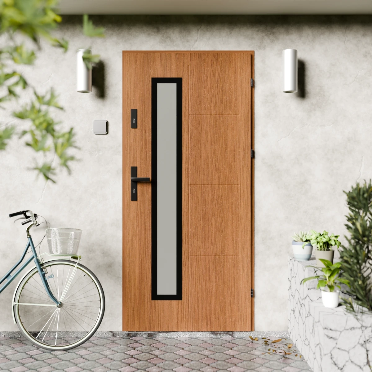 Dostępne w wielu wymiarach drzwi zewnętrzne będą idealnym wyborem nie tylko dla domów jednorodzinnych, ale także budynków wielorodzinnych, jako drzwi wejściowe zewnętrzne. Ponadczasowy design sprawdzi się zarówno w przypadku nowoczesnych nieruchomości, jak i nieco starszych obiektów, łącząc w sobie estetykę oraz niezwykłą trwałość.