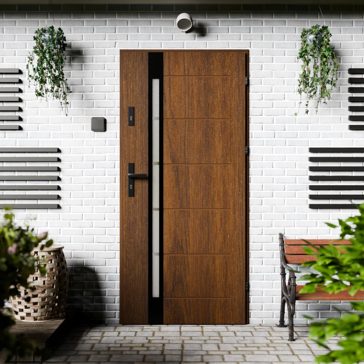 Dostępne w wielu wymiarach drzwi zewnętrzne będą idealnym wyborem nie tylko dla domów jednorodzinnych, ale także budynków wielorodzinnych, jako drzwi wejściowe zewnętrzne. Ponadczasowy design sprawdzi się zarówno w przypadku nowoczesnych nieruchomości, jak i nieco starszych obiektów, łącząc w sobie estetykę oraz niezwykłą trwałość.