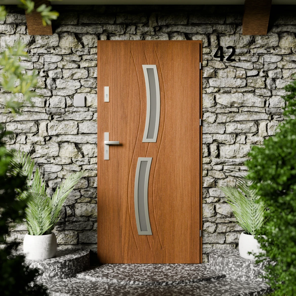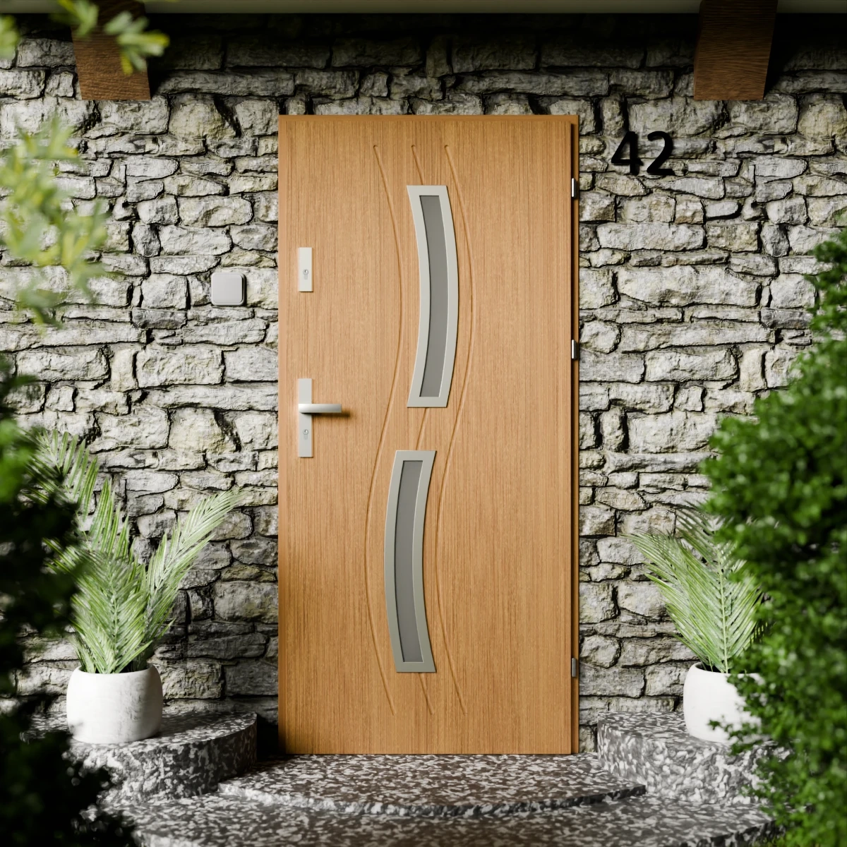 Dostępne w wielu wymiarach drzwi zewnętrzne będą idealnym wyborem nie tylko dla domów jednorodzinnych, ale także budynków wielorodzinnych, jako drzwi wejściowe zewnętrzne. Ponadczasowy design sprawdzi się zarówno w przypadku nowoczesnych nieruchomości, jak i nieco starszych obiektów, łącząc w sobie estetykę oraz niezwykłą trwałość.