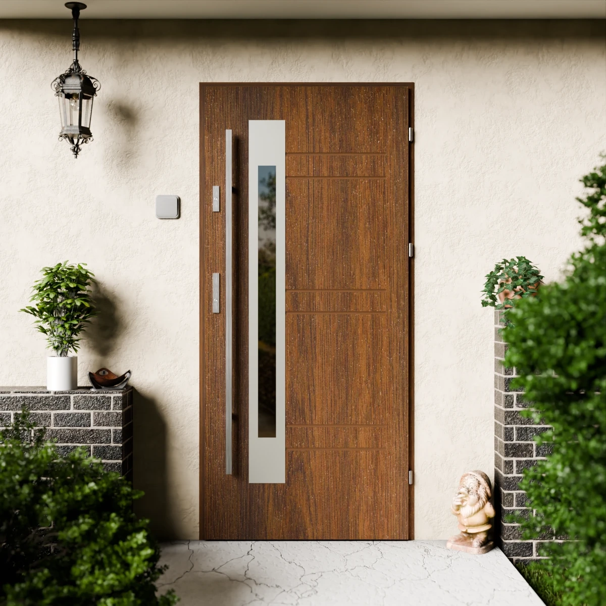Dostępne w wielu wymiarach drzwi zewnętrzne będą idealnym wyborem nie tylko dla domów jednorodzinnych, ale także budynków wielorodzinnych, jako drzwi wejściowe zewnętrzne. Ponadczasowy design sprawdzi się zarówno w przypadku nowoczesnych nieruchomości, jak i nieco starszych obiektów, łącząc w sobie estetykę oraz niezwykłą trwałość.