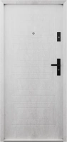 Drzwi klatkowe wejściowe do mieszkania w bloku wygłuszające 47 dB antywłamaniowe RC3 55 mm stalowe z tłoczeniami i klamką czarną białe struktura T34
