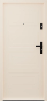 Drzwi klatkowe wejściowe do mieszkania w bloku wygłuszające 47 dB antywłamaniowe RC3 55 mm stalowe z tłoczeniami i klamką czarną beżowe T34