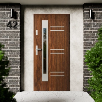 Modern Inox CK drzwi zewnętrzne 72 mm z klamką energooszczędne Ud-1.3 przeszklone lustro weneckie szyba mleczna Program Czyste Powietrze